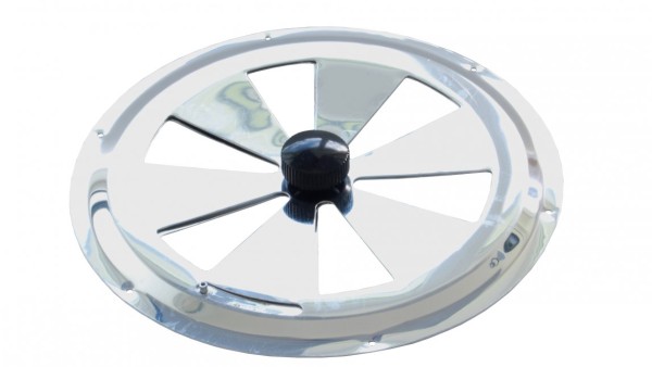 Ventilatierozet 250mm in diameter, draaibaar te openen en te sluiten, gemaakt van aluminium.